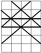 其水平邊及垂直邊皆為 4 單位長度,畫上去的四條直線的端點分別為