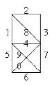 有些 LED 系統用線段來表示字元,就像某些計算機或加油機一樣。假設我們就有一個這樣的 LED 系統,其中每個標準的英文字母都是由 10 個可能的線段來組成,這些線段的編號如右圖: