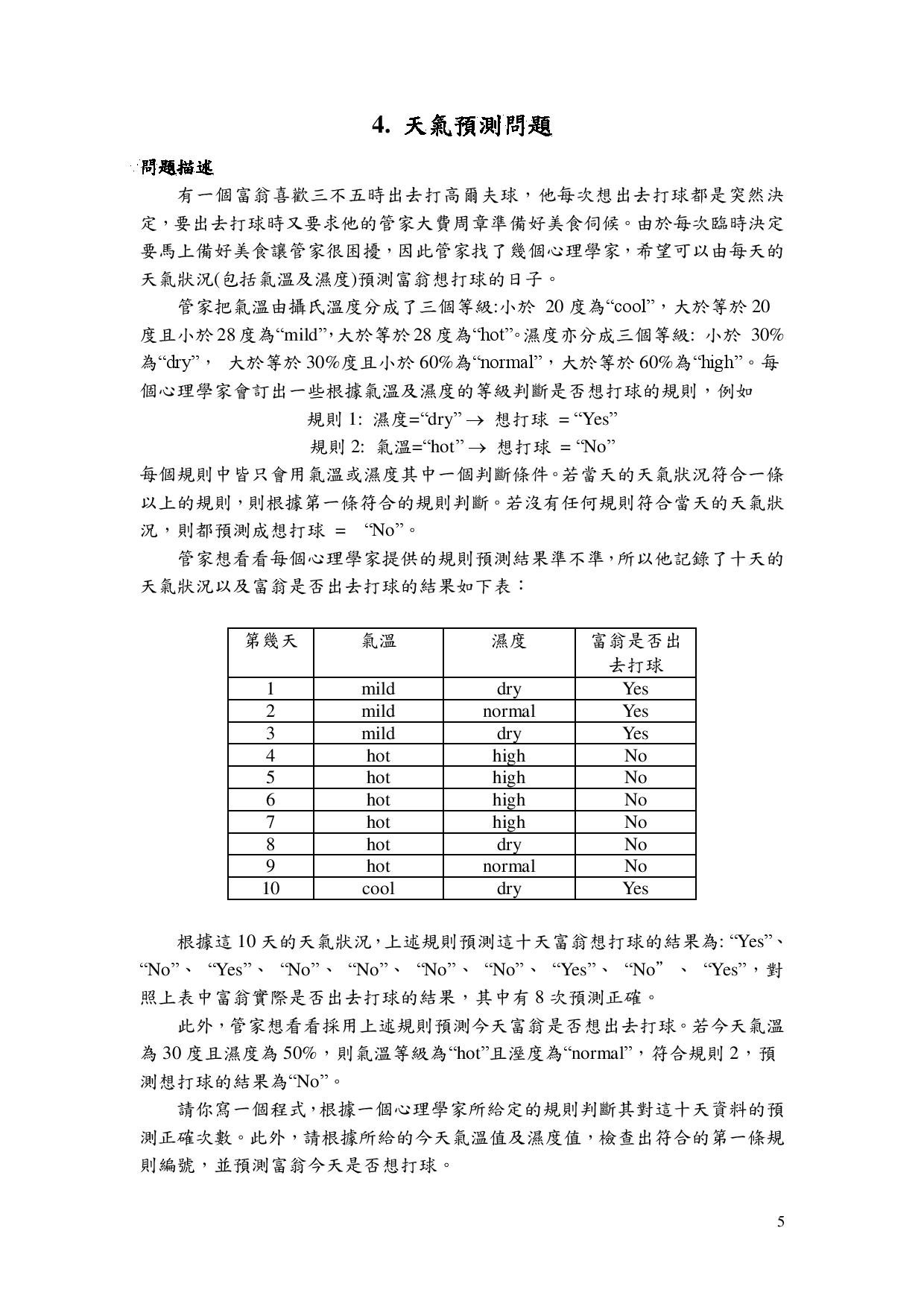 4.天氣預測問題