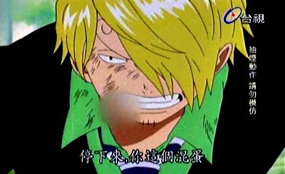 2. ONE PIECE在美國播出時,SANJI口中含的是棒棒糖。有些先進國家非常認真看待兒童權益,不是打個馬賽克欲蓋彌彰那麼隨便。如果你關心兒童權益,在這方面最有名的組織是兒童福利聯盟,各位可以自行上網收集相關資料。