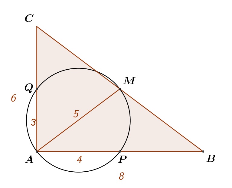 可以發現到 ∆ABC 為直角三角形,所以 ∆APQ 亦為直角三角形,而且此處剛好 M、R 共點。
