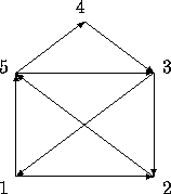 經過這麼多年了,現在我們想要寫一個程式來知道如果我們從左下角開始畫起,共有多少種一筆畫聖誕老人房子的方法。下面的圖中的5個點用1到5來編號(從編號1開始畫起),箭頭代表一筆畫時筆的路徑。這個例子中的路徑為:153125432