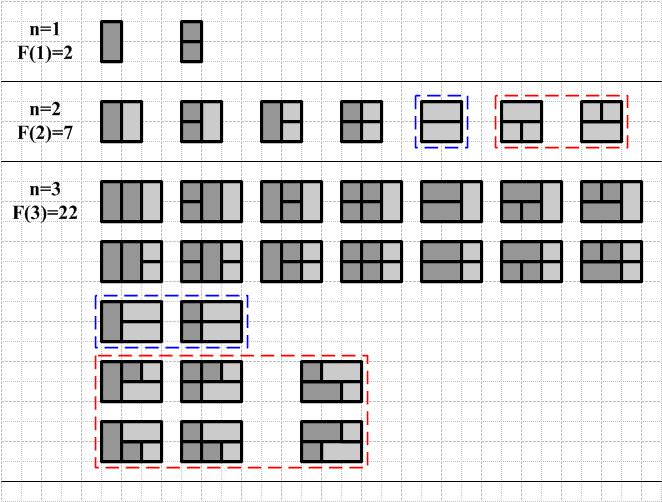 今規劃使用兩種導盲磚鋪設,一種為2*1矩形磚,一種為1*1正方形磚,試問可以有多少種不同的鋪設方式?