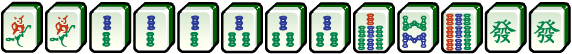 三元牌(Dragon tiles):紅中、青發和白皮(或白板)。Dragon tile這個詞是Joseph Park Babcock 在1920年出版的書中向美國大眾介紹麻將。最初這些牌的起源與中國科舉(Chinese Imperial Examination)相關,紅中意味著你能通過科舉而被任官,青發代表之後家境就會富裕而白皮代表應該作為一個清廉的官員。在這個問題中,以ZHONG、FA、BAI代表。