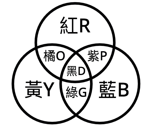 在一塊 NxN 的白布上,固定的位置上有幾支滴墨管。墨水的顏色有黃色(Yellow),藍色(Blue),以及紅色(Red)。按照一般彩色混色的原理如圖三,等量的黃色與藍色可以混出綠色;黃色與紅色則可以混出橘色。當一個地方被三種顏色染色時,則白布呈現黑色。顏色代碼分別是 (R=紅色,Y=黃色,B=藍色,O=橘色,G=綠色,P=紫色,D=黑色)。
