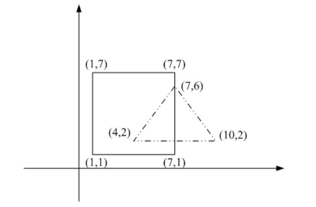 (7,7), (1,7),且化學工廠的舊址為一個三角形區域,其端點座標依序為(4,2), (10,2),
