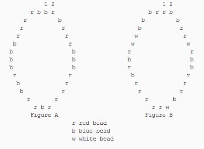 The configuration in Figure A may be represented as a string of b's and r's, where b represents a blue bead and r represents a red one, as follows: brbrrrbbbrrrrrbrrbbrbbbbrrrrb .