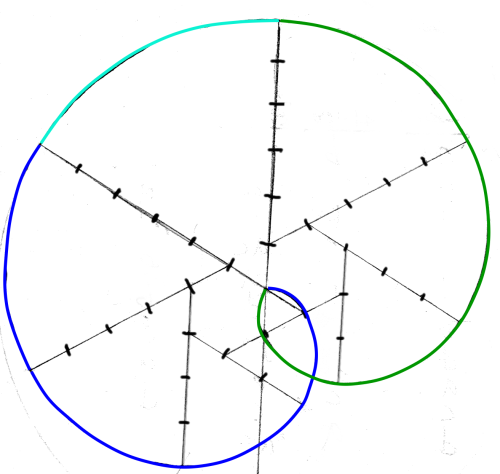 ex. 六等份的扇形半徑分別是:r (5/6)r (4/6)r (3/6)r (2/6)r (1/6)r