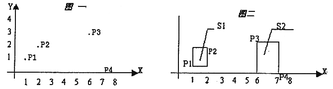 这些点可以用 k 个矩形(1<=k<=4)全部覆盖,矩形的边平行于坐标轴。当 k=2 时,可用如图二的两个矩形 sl,s2 覆盖,s1,s2 面积和为 4。问题是当 n 个点坐标和 k 给出后,怎样才能使得覆盖所有点的 k 个矩形的面积之和为最小呢。约定:覆盖一个点的矩形面积为 0;覆盖平行于坐标轴直线上点的矩形面积也为0。各个矩形必须完全分开(边线与顶点也都不能重合)。