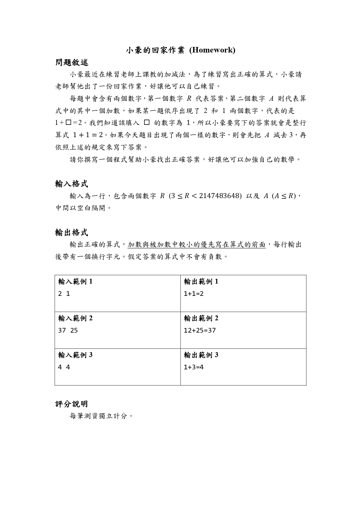 f043. 1. 小豪的回家作業 (Homework)