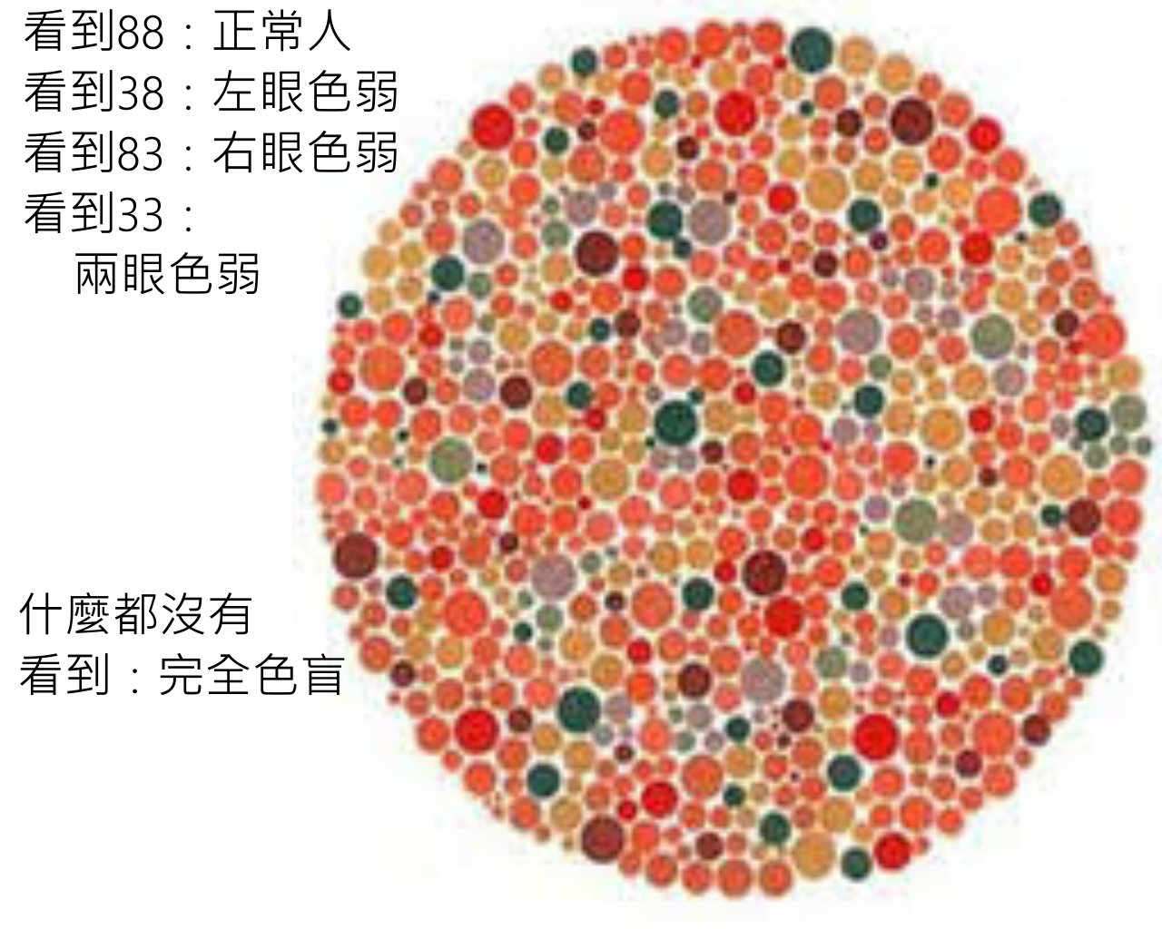 迦壕有色弱,所以有些顏色他分不清楚,這裡假設是紅色(RED)和綠色(GREEN)