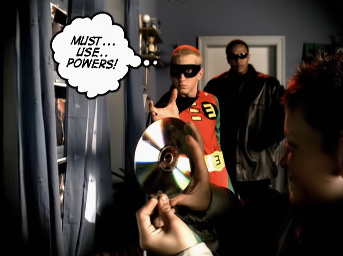 有一個小男孩在唱片行買了一個印有 "Parental Advisory" 的專輯,幸好 Ǝ-Man 和 D博士 及時阻止小男孩播放。