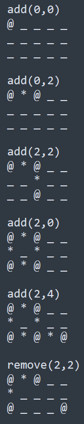 接下來會有 $h$ 行,每一行都有三個非負整數 $r$, $c$, $t$,代表在位置 $(r, c)$ 執行操作 $t$
