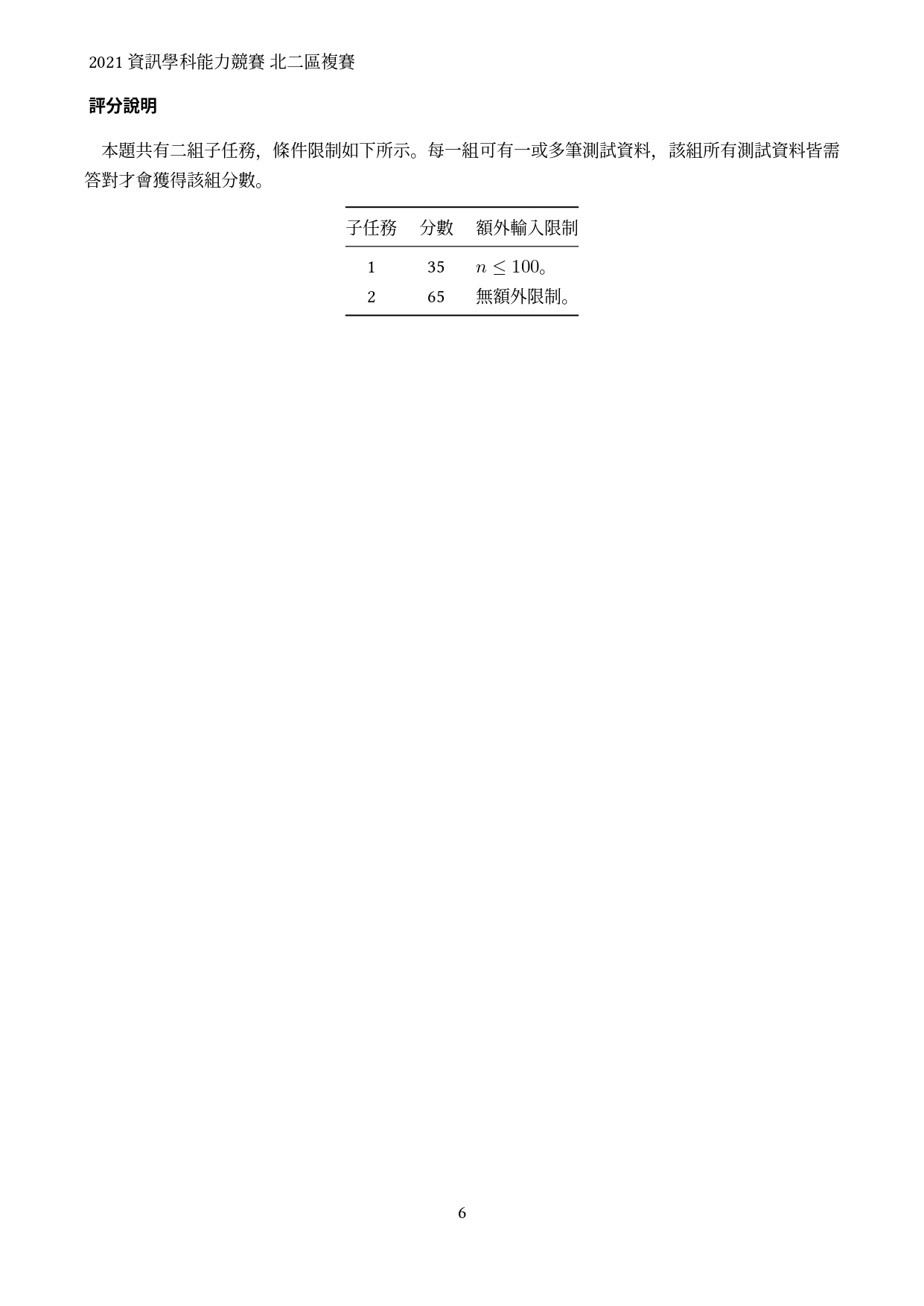 備註:依照題目設定,本題額外記憶體使用上限為 8192 KB = 8 MB