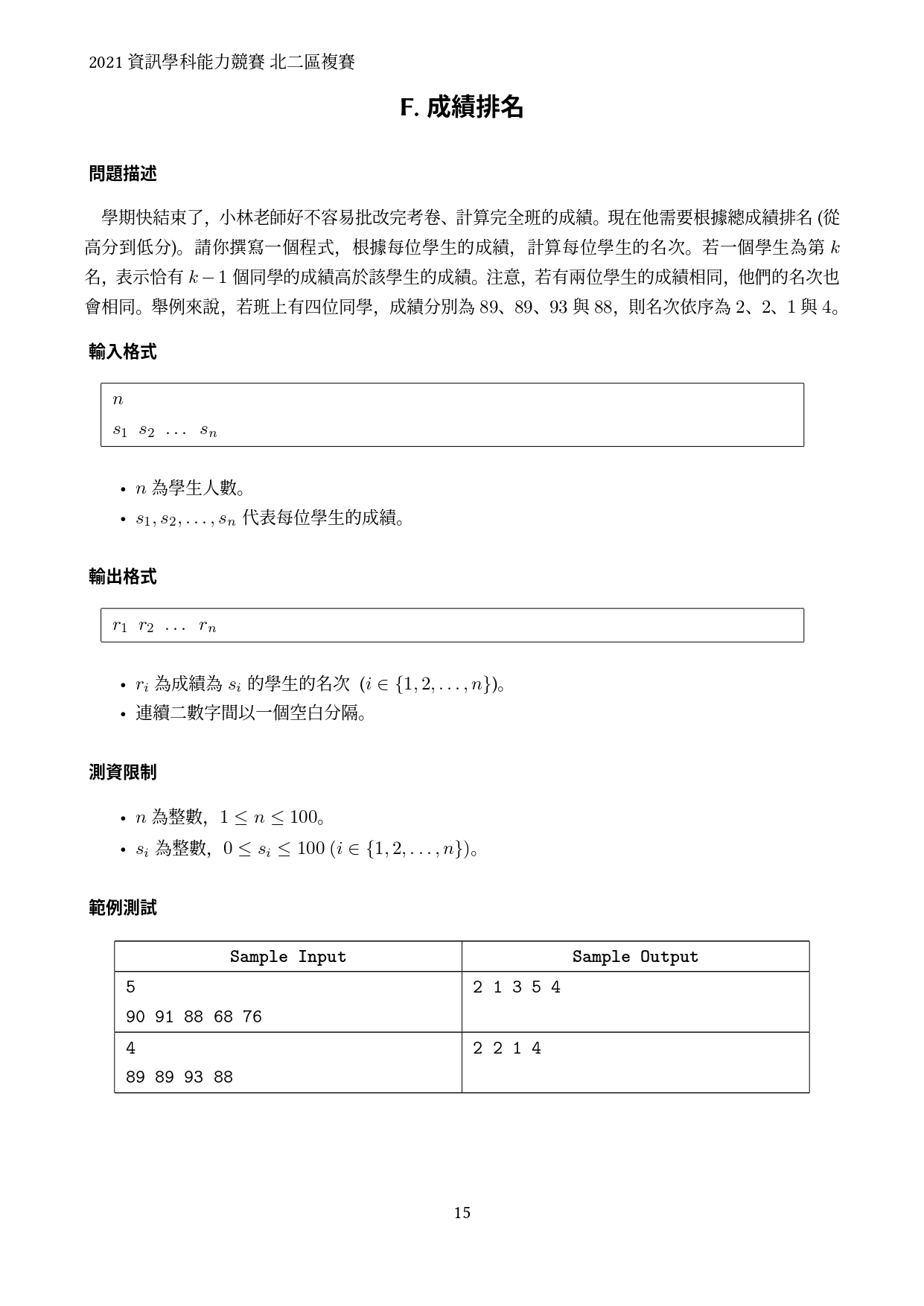 110 北二區 桃竹苗 資訊學科能力複賽 [管理者: mushroom.cs9 ... (mushroom) ]