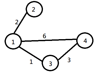 範例一圖長這樣,其中以路線$\color{black}{1->4}$最好,令$\color{black}{X=(3)}$,則磷酸距離為$\color{black}{(6/3)=2}$。另外考慮另一條路線$\color{black}{1->3->4}$,令$\color{black}{X=(1,2)}$可以得到這條路線之最小值$\color{black}{(1/1)+(3/2)=2.5}$,但這不是這題的最小值。