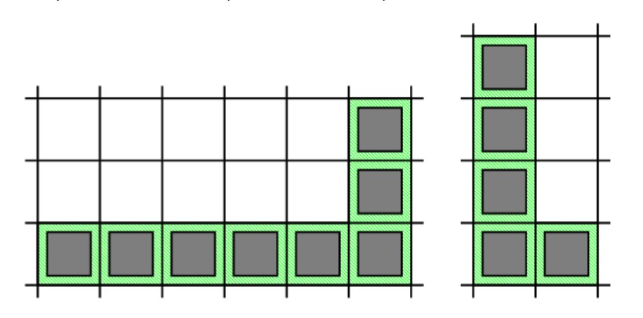 第二個是通過使用單元格形成的:(3,1), (4,1), (5,1), (6,1), (6,2)