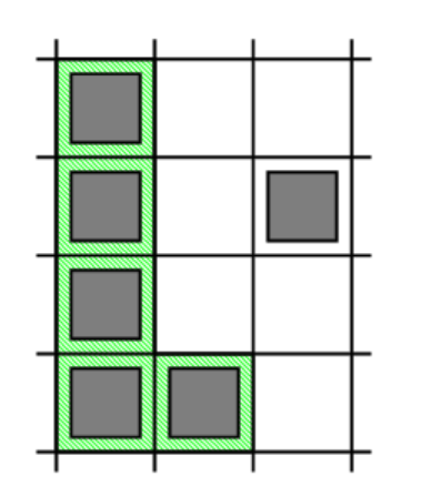 第三個是使用單元格形成的:(6,1), (5,1), (4,1), (3,1), (3,2)