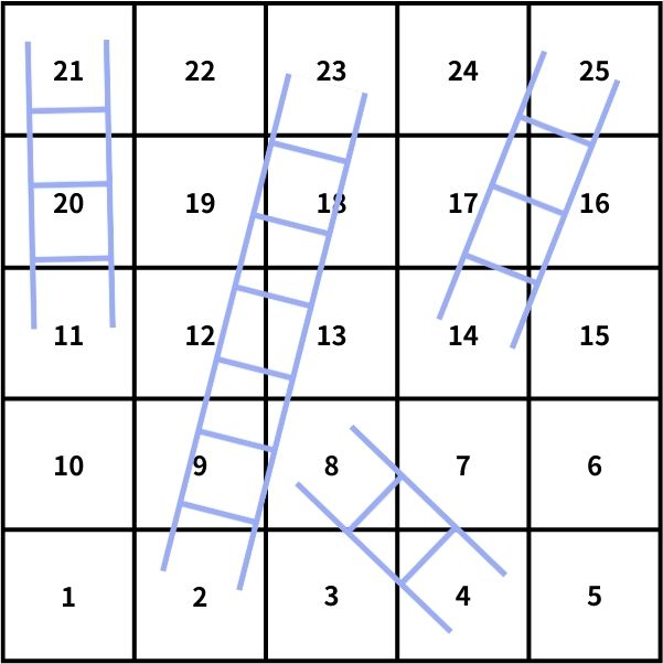 蛇梯棋是一款老少咸宜的桌遊,身為一位數學家,管它是淺顯還是易懂,我們必須要算點什麼。今天的任務是,給一張蛇梯棋的地圖,在忽略掉遇到蛇會回到前面的格子的情況下,請計算出有多少種移動方式能夠到達終點。