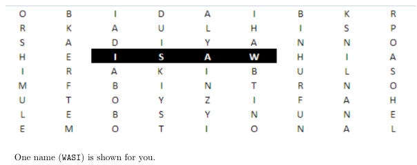 請輸出一個字串,該字串是網格中恰好隱藏了兩次的名字。