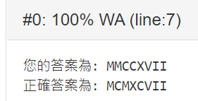 顯然我的答案:M'MC''CX'VII,''內的次序顛倒了,不確定問題出在哪。
