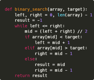 這是一個普通的二元搜寫法不多解釋,它有一個小問題,如果陣列裡有重複的元素,我不能保證拿到的是哪一個。