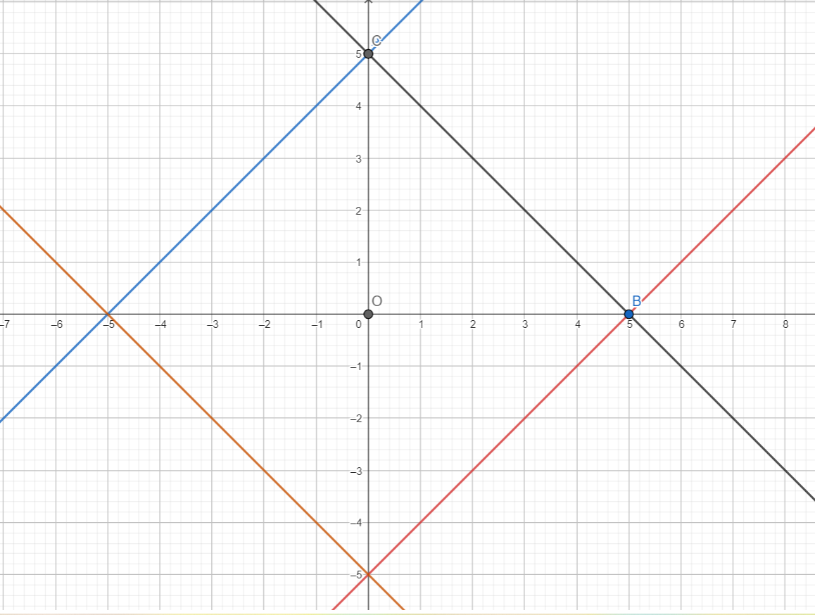 就會變成一個等腰直角三角形,三個頂點分別為 ABO,且 O 為直角