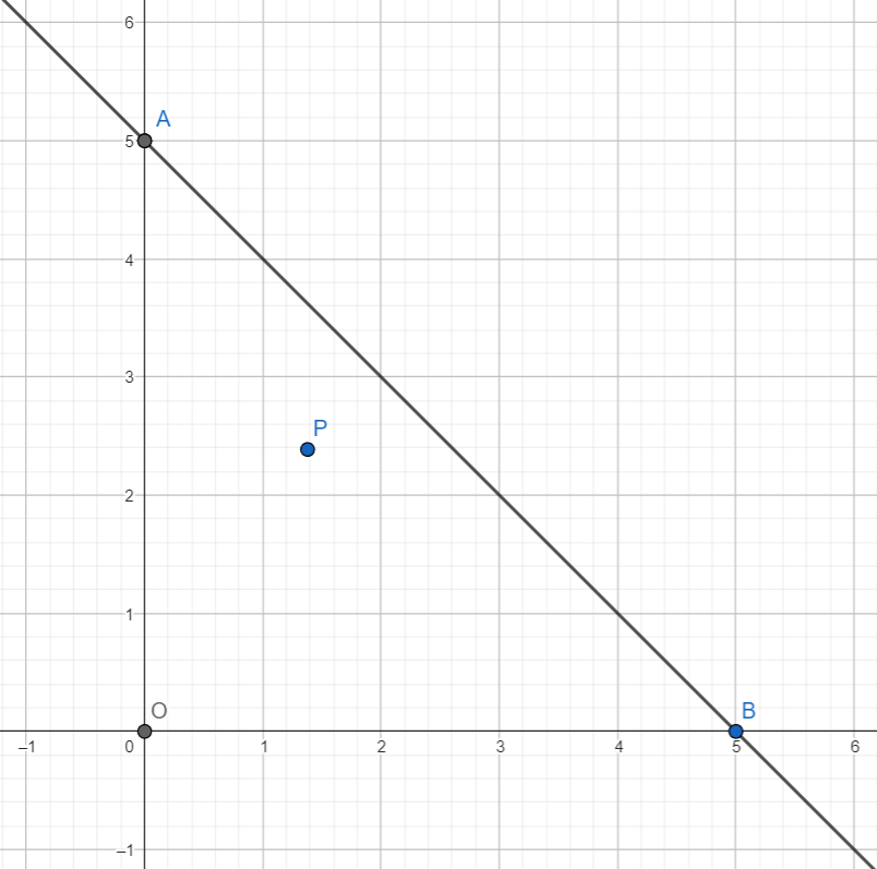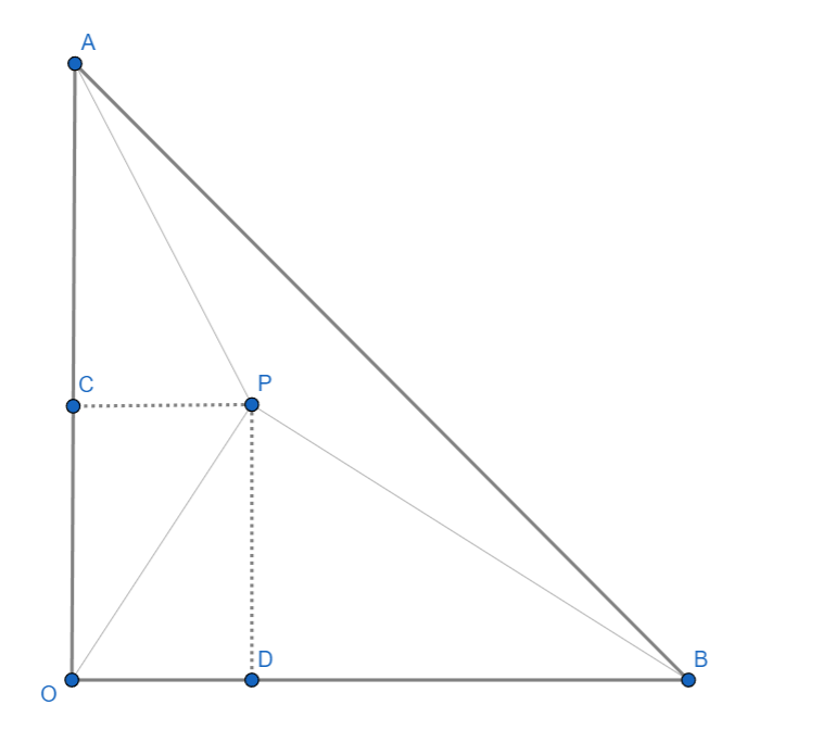 在三角形ABO內任意位置標上 P ,表示首都的位置(在天譴範圍內)