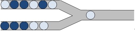 例如,我们首先从下管道中移一个球到输出管道中,将得到图2所示的情况。