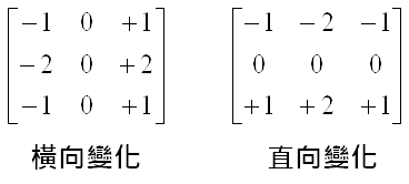 SXR(x,y) = ( R(x+1,y-1) - R(x-1,y-1) ) + 2 * ( R(x+1,y) - R(x-1,y) ) + ( R(x+1,y+1) - R(x-1,y+1) ) (中間像素的結果先乘以二)