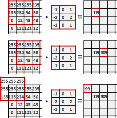 右邊減自己、自己減左邊,只有一個點。然而輪廓通常是一條線。因此納入上面像素和下面像素,三點連線,疊加差距,凸顯輪廓。