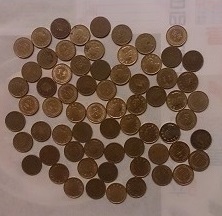 2. 測試資料的硬幣,肉眼清晰可見,如本題附圖。範例輸入是為了符合 ZeroJudge 版面寬度限制,所以才將圖片縮小到看不清楚。