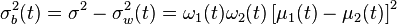 左右兩側各自集中,相對來說,就是左右兩側跨距明顯。依此想法,方才的數學式子,經過嚴謹的推導,可以重新改寫成兩者的平均數的差平方,乘上加權,越大越好。