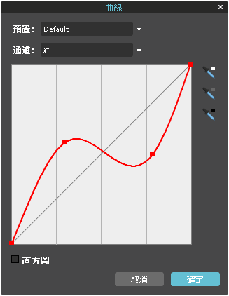 首先解釋一下曲線。其實曲線就是函數,用來轉變像素數值。R值有一個曲線、G值有一個曲線、B值有一個曲線。建立三條曲線,分頭處理RGB值。