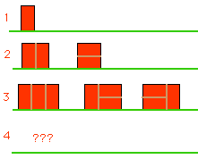 如果我們要用常見的長度為高度兩倍的磚塊建一道磚牆,並且牆的高度為兩個單位,根據牆的長度,我們可以建出不同數量的花樣。從圖一我們可以看出: