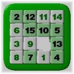 這遊戲是由 15 個可滑動的方塊組合成的,分別標上 1 ~ 15 的數字,然後擺在一個 4 x 4 大小的框架中, ( 當然有一個格子是空的 ) 。