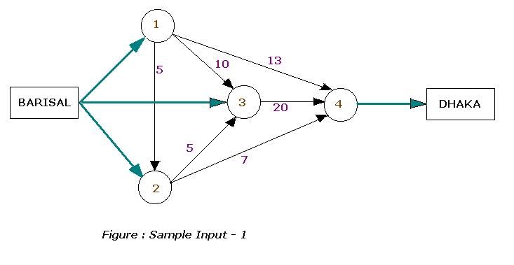 DESA正在進行一項電力傳輸的計畫。在 Barisal 這個地方新建了一座發電廠,它的主要目的是提供電力給 Dhaka這座城市。由於 Dhaka 的人口數相當多,DESA 希望盡可能透過網路傳輸最大的電力給它。但是電力在傳輸時會因電阻而損失,所以他們想要使用變電裝置來達到不損失電力的目標。