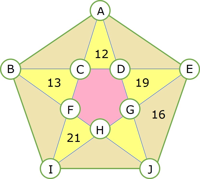 FBC = 13 GDE = 19 CAD = 12 HIF = 21 GEJ = 16