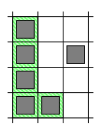 第三個是使用單元格形成的:(6,1), (5,1), (4,1), (3,1), (3,2)