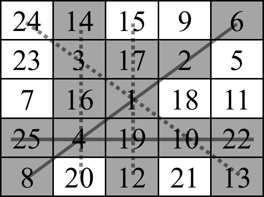 15 25 8 14 3 16 4 17 1 19 12 2 6 10 22 13 24 14 15 9 6 23 3 17 2 5 7 16 1 18 11 25 4 19 10 22 8 20 12 21 13
