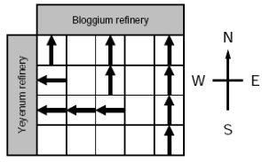 你的程序必須設計一個輸送帶系統,最大化所開採礦物的總量,即運送到yeyenum精煉廠的yeyenum和運送到bloggium精煉廠的bloggium的總和。