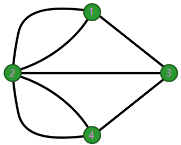 萊昂哈德·歐拉在1736年在論文《柯尼斯堡的七橋》中,把實際的抽象問題簡化為平面上的點與線組合,每一座橋視為一條線,在圖論中稱為「邊」(edge),橋所連接的地區視為點,在圖論中稱為「頂點」(vertex, 複數形 vertices)。