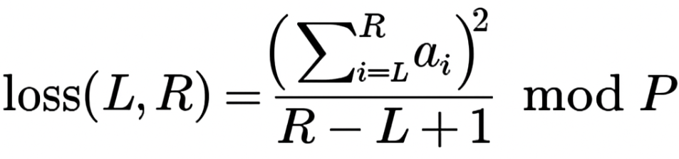 其中 P=998244353 為質數。由於是取模意義下的除法,計算時請使用 (R−L+1)^−1 的模反元素。