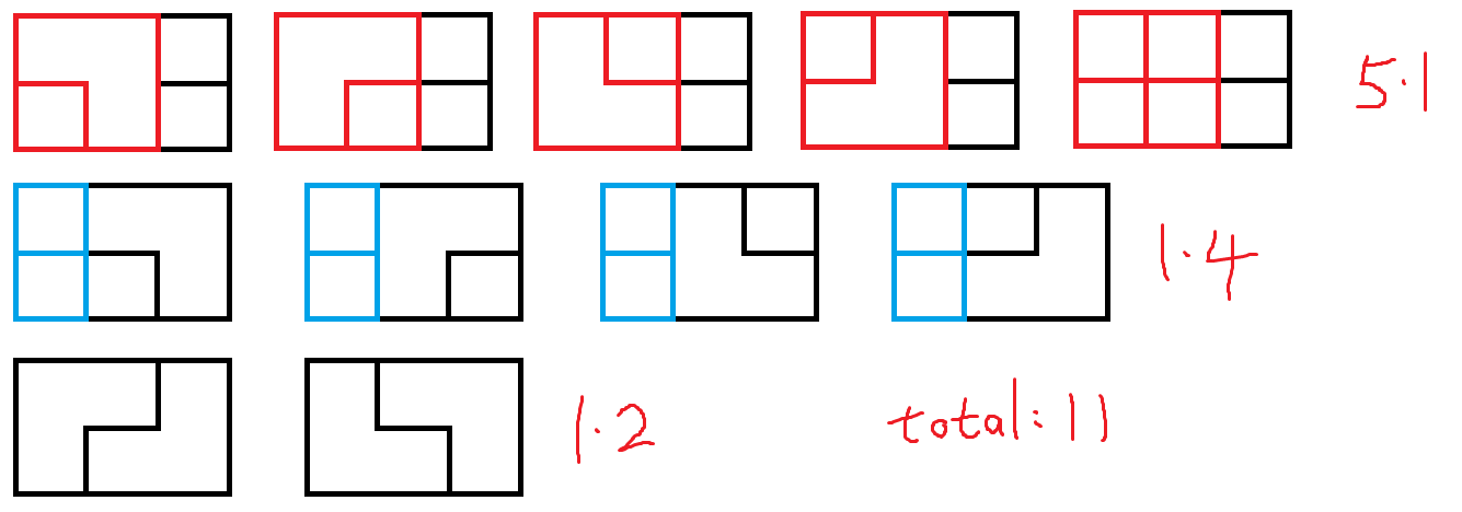 多兩列->4種(扣除與上方重複1種)