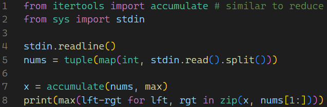 accumulate原先是用來計算累加的工具,但更改func參數為max,就可以儲存"歷史最高"的資訊