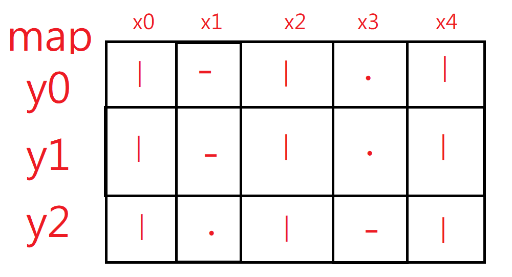elif (go_x < 2 * W - 2 and map[go_y][go_x + 1] == '-' and walk[go_y][go_x + 1] != 'X'):